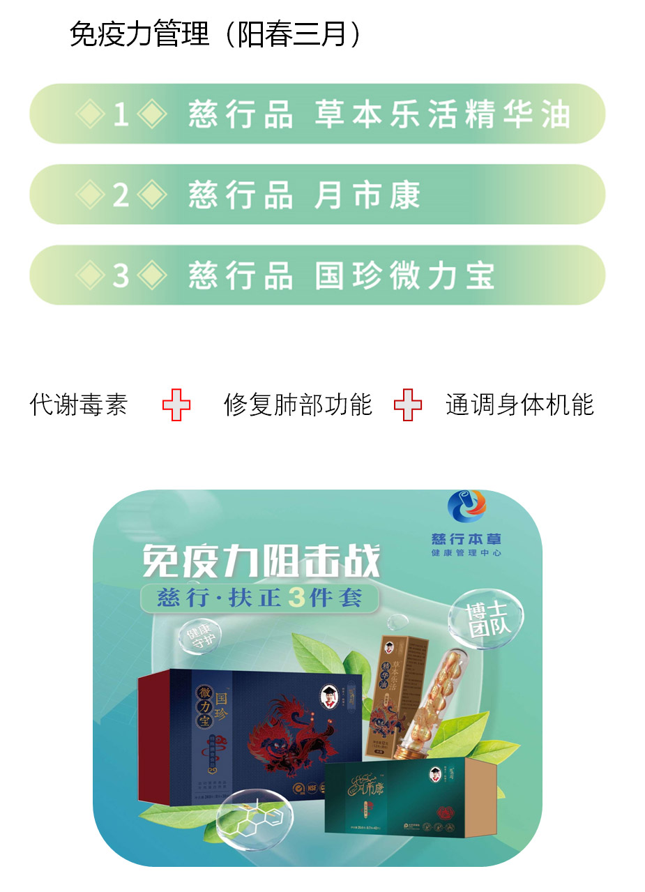 2、慈行本草健康管理中心的产品是以靶向通调为核心,以产品功效和细胞代谢为两个基本点,通过全息检测模式、增效复配模式、教练陪愈模式、数据康养模式相结合来对改善客户群体的症状、体质和习惯,进而达到身心健康的状态。