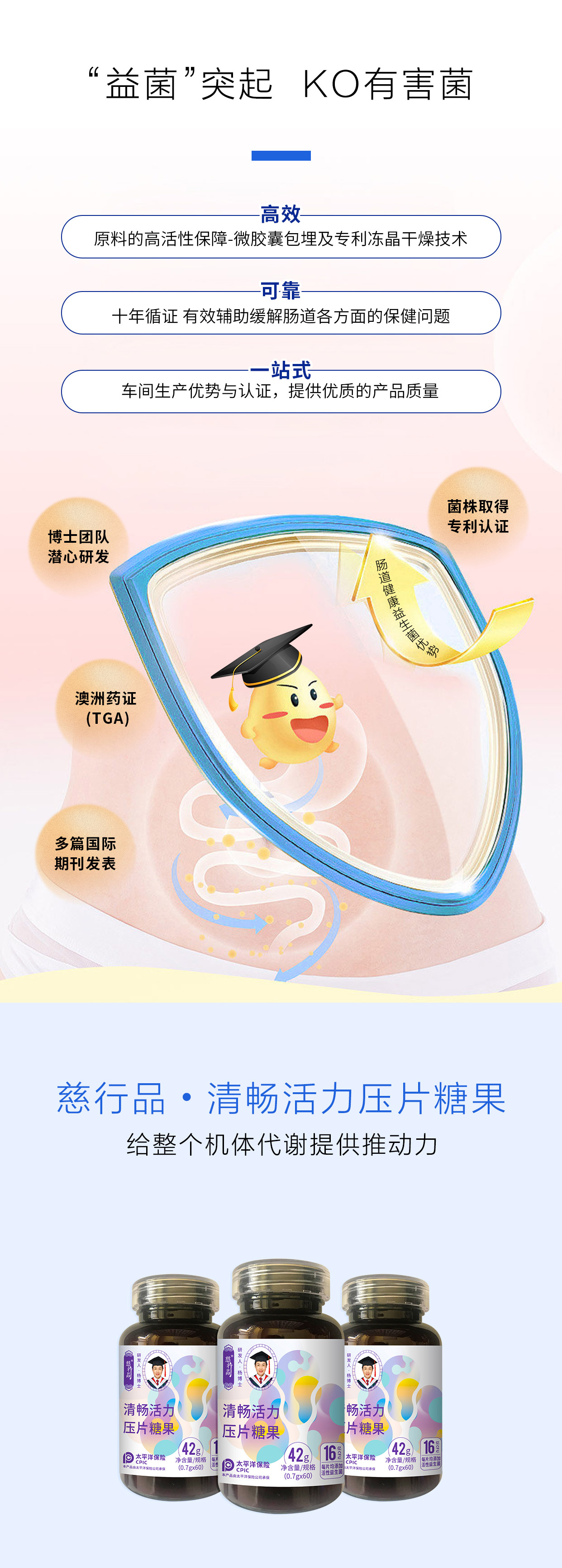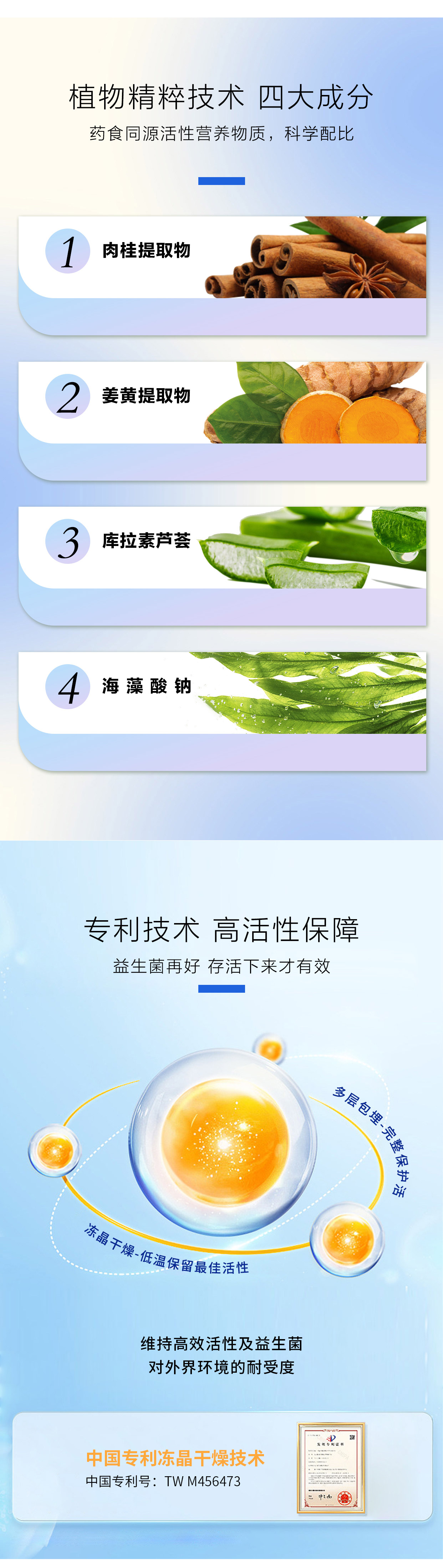 ②冻晶干燥技术将活性益生菌多层包埋,能更加稳定的将高效活性因子送达肠道,提升防御力